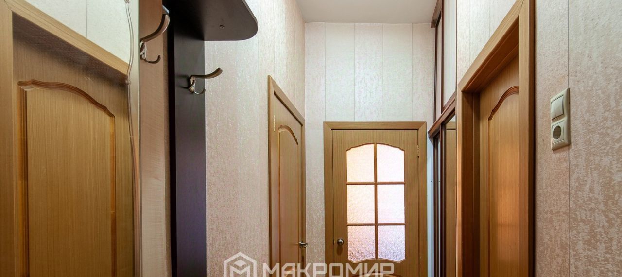 Кухня - 8 кв.м, Сан.узел с ванной совмещен, в коридоре встроенный шкаф, имеется балкон, остеклен.
