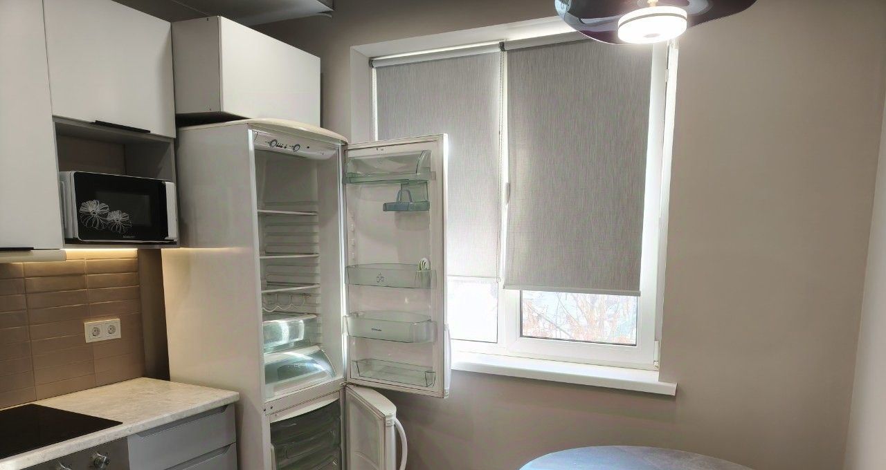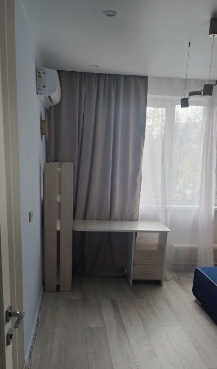 В квартире сделан евроремонт, что создаёт комфортную и современную обстановку. В комнате и на кухне есть необходимая мебель, а также современная техника, включая кондиционер и холодильник. Санузел совмещённый, оборудован ванной. Окна выходят во двор, поэтому в квартире всегда тихо и спокойно.