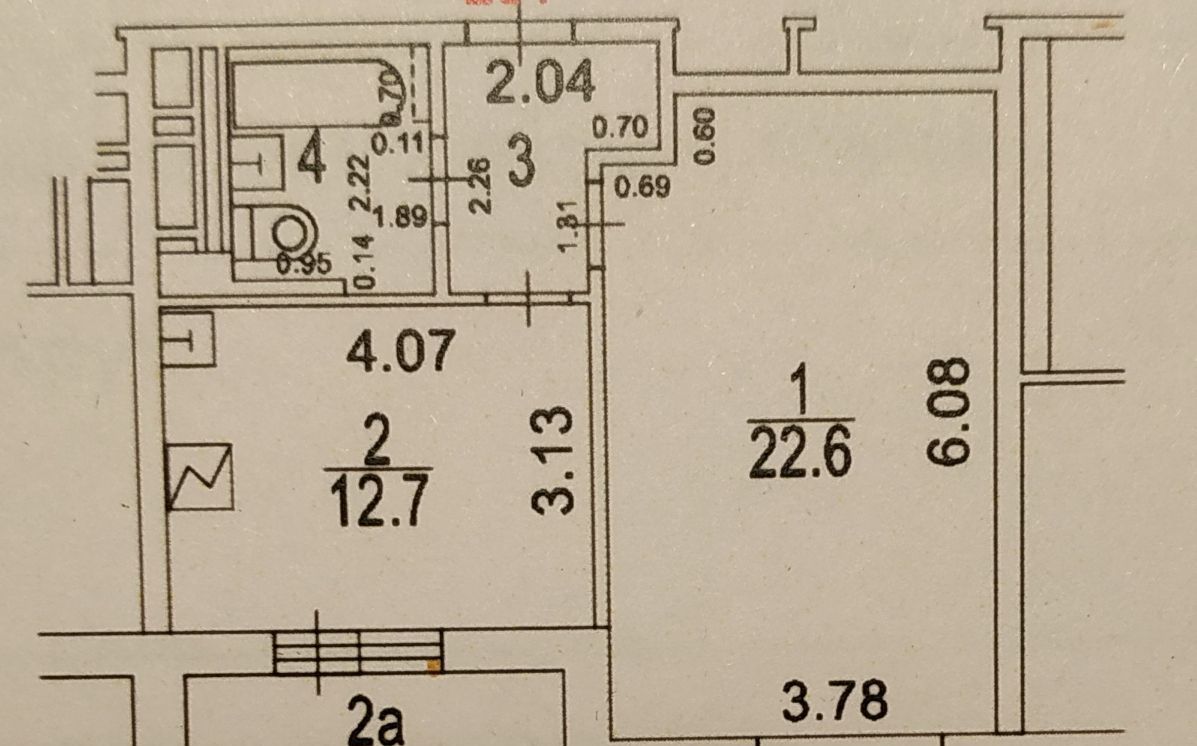 - комната — 22 м²