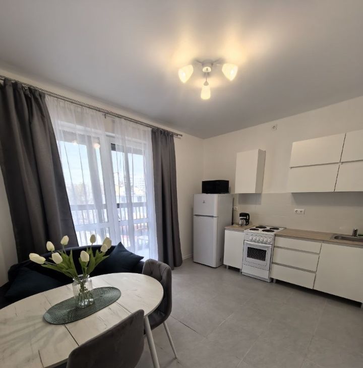 Продуманная планировка, светлое пространство, удобная кухня и жилая зона. Есть уютный балкон со столиком и стульями, откуда открывается отличный вид из окна.