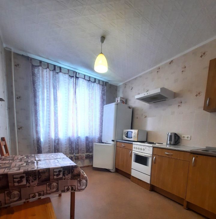 Сдается 1 комнатная квартира с хорошим ремонтом, большой кухней, комната с альковом с большой кроватью, диван и очень уютная и теплая. Меблирована полностью. Кухонный гарнитур, холодильник, стиральная машина, микроволновка. Раздельный санузел.