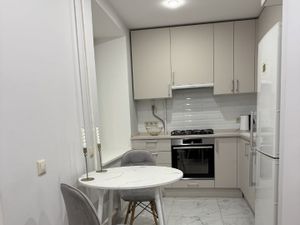 Квартира с мебелью: в наличии кухня, холодильник, стиральная машина, микроволновка, стол + 2 стула, кровать двуспальная, стенка под ТВ, прихожая. Вся мебель новая.