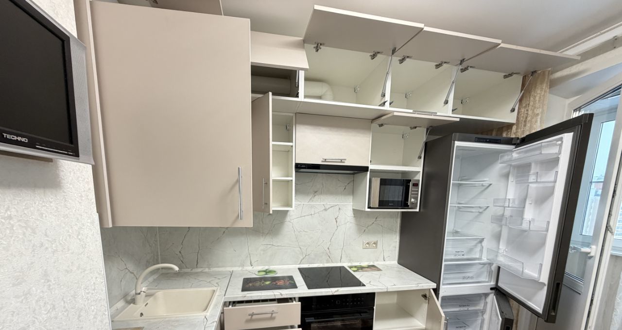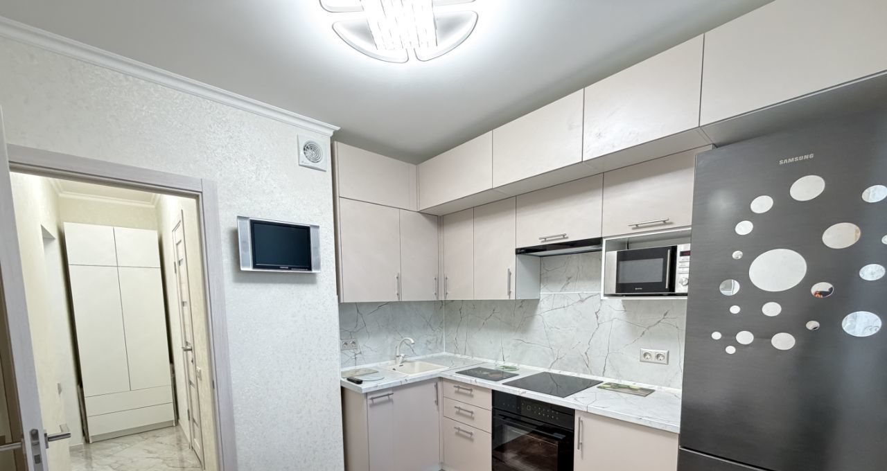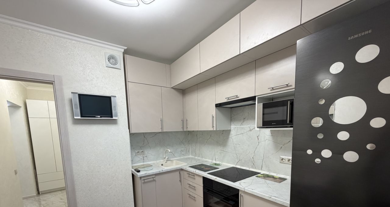 ОТЛИЧНОЕ ПРЕДЛОЖЕНИЕ. Сдается однокомнатная квартира только что после качественного дизайнерского ремонта, вся мебель и техника НОВЫЕ, никто не жил. Очень удачная планировка, просторная комната с эркерным окном. Кухня с выходом на лоджию. Очень вместительный встроенный кухонный гарнитур, новый холодильник, микроволновая печь, духовой шкаф, варочная панель, телевизор, стол обеденный. застекленная и отремонтированная лоджия. Окна во двор, очень тихо. Санузел совмещенный, ванна, новая стиральная машина. В комнате двуспальная кровать, туалетный столик, компьютерный стол, тумба под ТВ, телевизор, платяной шкаф. В квартире много мест для хранения вещей. В прихожей удобным образом за шкафом-купе с зеркалом до потолка, располагается гардеробная комната. Квартира очень теплая и уютная, в светлых тонах. Удобная транспортная доступность, до станций метро не более 5 мин ходьбы, выезд на СВХ. Развитая инфраструктура. Дом с огороженной территорией, всегда есть места для парковки. Через дорогу многоуровневый платный паркинг. Сдается на длительный срок. БЕЗ ЖИВОТНЫХ.