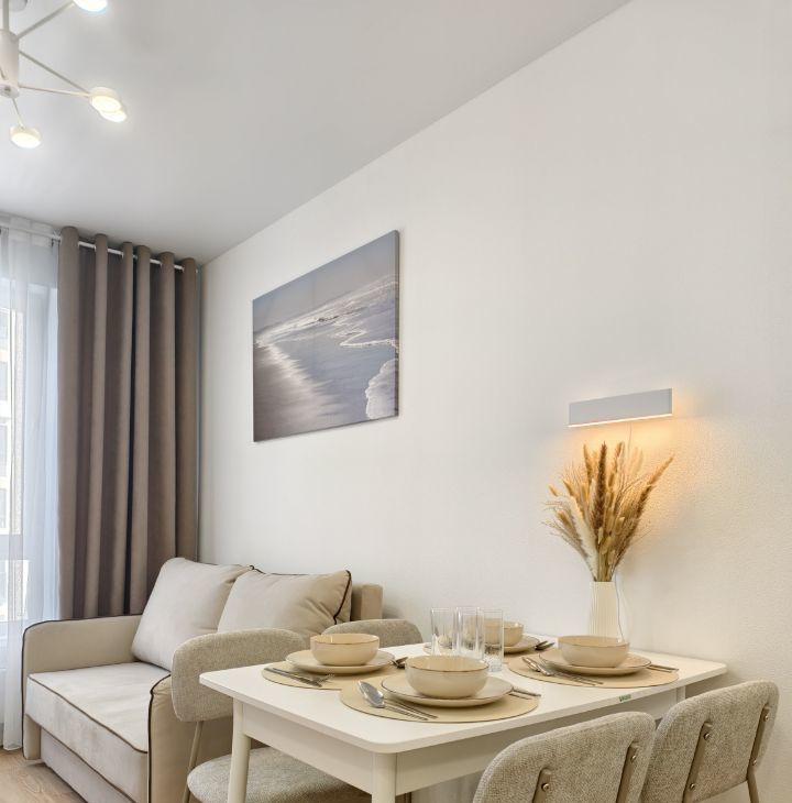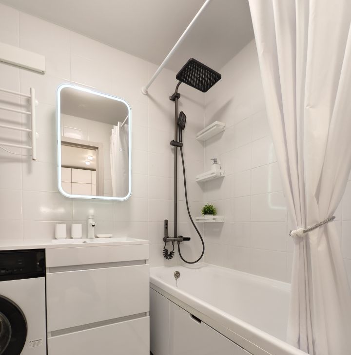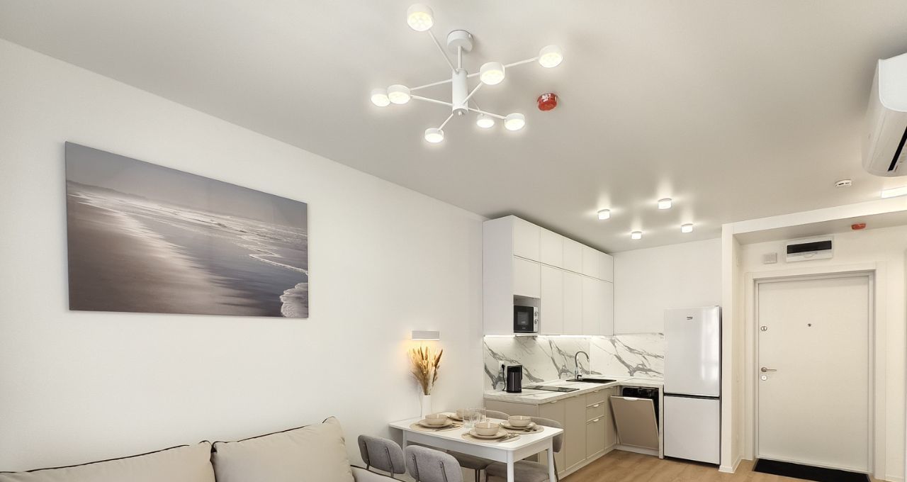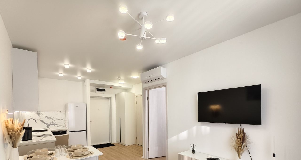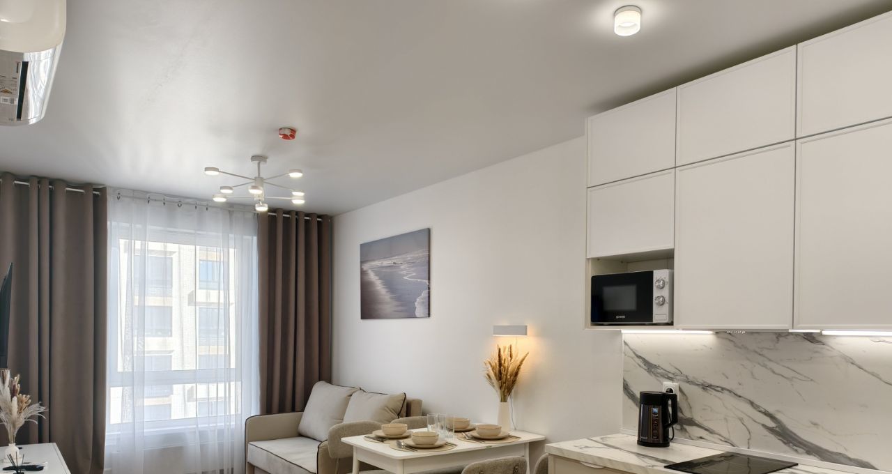 Укомплектована всей необходимой для комфортной жизни техникой и мебелью, сдаётся ВПЕРВЫЕ! В наличии кондиционер, посуда, бельё, электрочайник, СВЧ, телевизор, раскладной диван, стиральная машина и т.п.