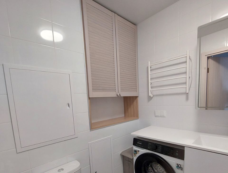Квартира сдаётся впервые. В квартире есть всё необходимое для комфортного проживания: холодильник, посудомоечная и стиральная машины, телевизор. Мебель установлена как на кухне, так и в комнате, много мест для хранения, кровать с подъемным механизмом. Санузел совмещённый, оборудован ванной. Качественный евроремонт создаёт атмосферу уюта и стиля. В квартире много естественного света.