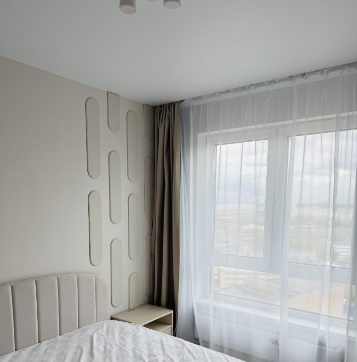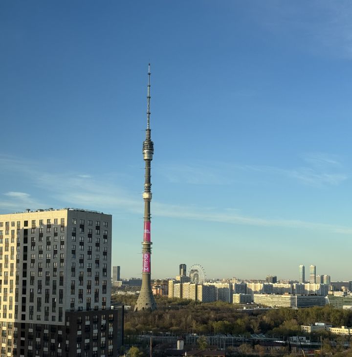 Из окон открывается впечатляющий панорамный вид на Останкинскую башню, ВДНХ, Лосиный остров и Москву. Днем квартира наполнена естественным светом, а вечером — атмосферой города с высоты. При этом плотные шторы блэкаут позволяют полностью затемнить пространство и комфортно высыпаться.