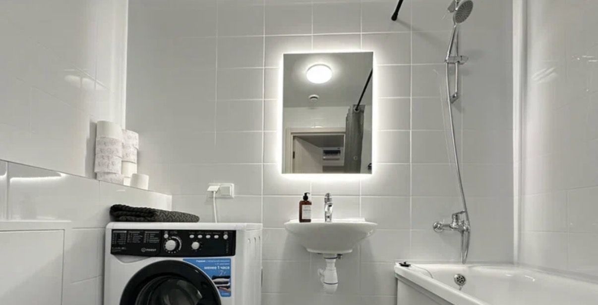 В квартире есть всё необходимое для комфортного проживания. Просторная кухня-гостиная площадью 15 кв. м оборудована современной мебелью и техникой: холодильник, посудомоечная машина, стиральная машина, телевизор, диван. В спальне двуспальная кровать и шкаф. Ванная комната оснащена ванной и совмещённым санузлом.