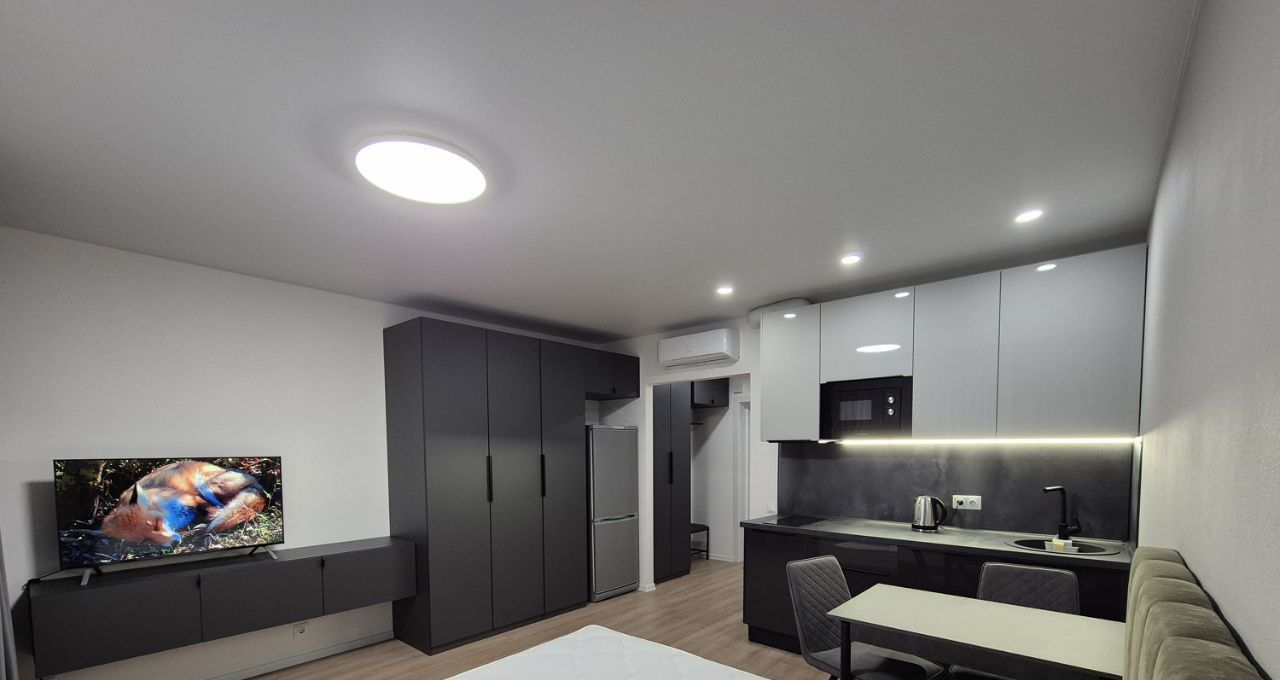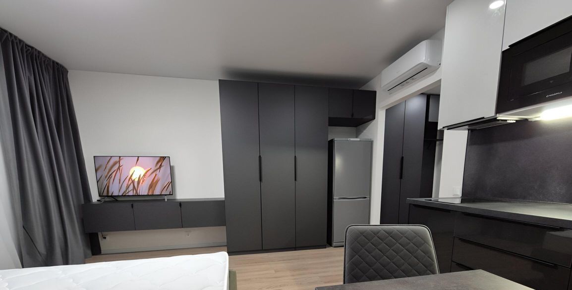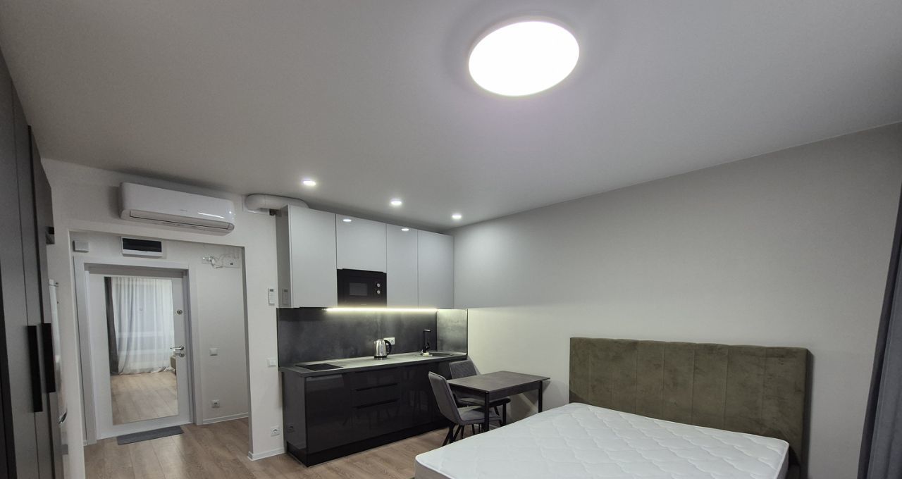 Сдается студия 25.4 м2 в ЖК Руставели 14. Квартира оборудована всем необходимым для комфортной жизни (мебель, холодильник, стиральная машина, микроволновая печь, варочная панель, телевизор, кондиционер, чайник, одеяло, подушки, интернет). Все как на фото. Вся мебель и техника новые.
