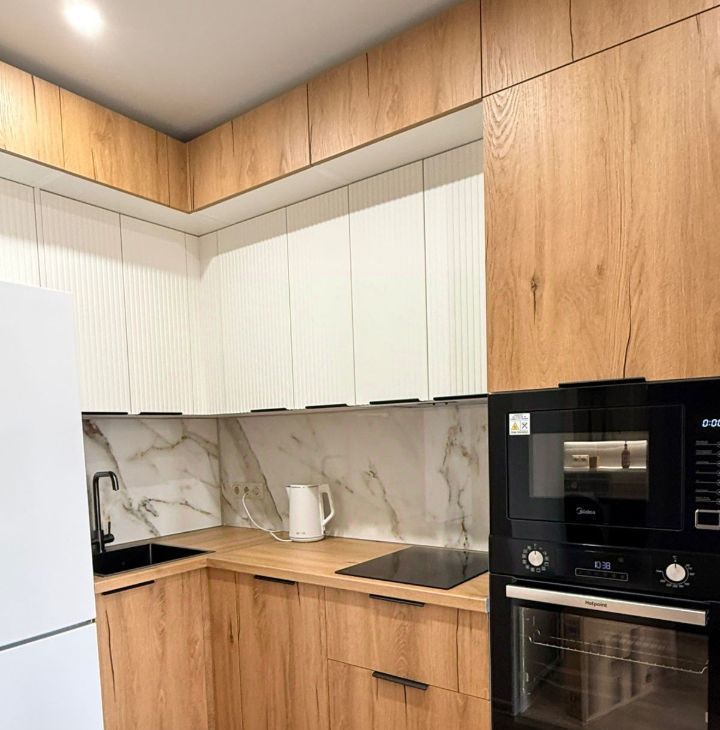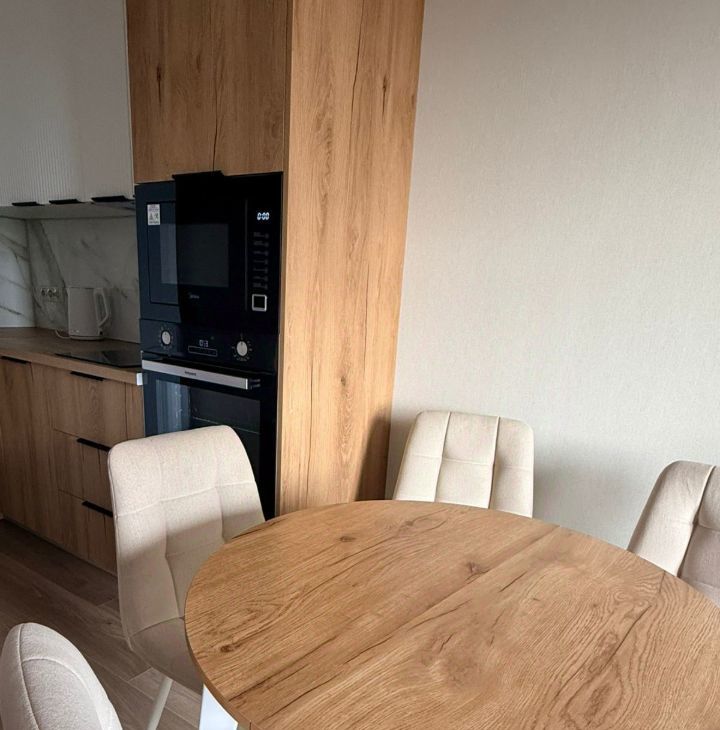 В квартире сделан свежий дизайнерский ремонт, она полностью укомплектована всей техникой и мебелью известных брендов.
