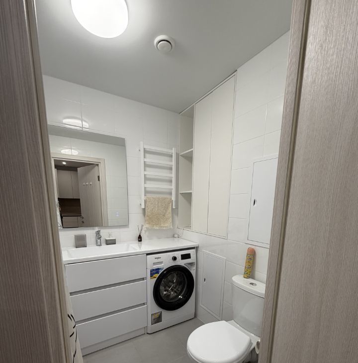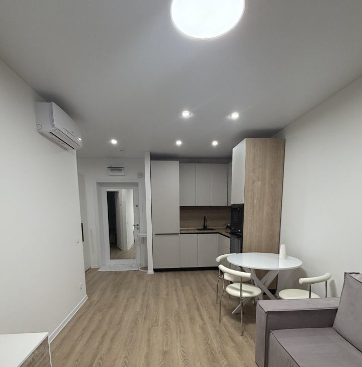 Квартира с евроремонтом, полностью готова для комфортного проживания. Благодаря удачной планировке и высоким потолкам в 2.6 метра, пространство наполнено светом и воздухом. В квартире есть вся необходимая мебель как на кухне, так и в жилой комнате. Совмещенный санузел оборудован ванной, поэтому можно расслабиться после долгого дня. Для вашего удобства в квартире установлены кондиционер, холодильник, посудомоечная машина, телевизор и стиральная машина.