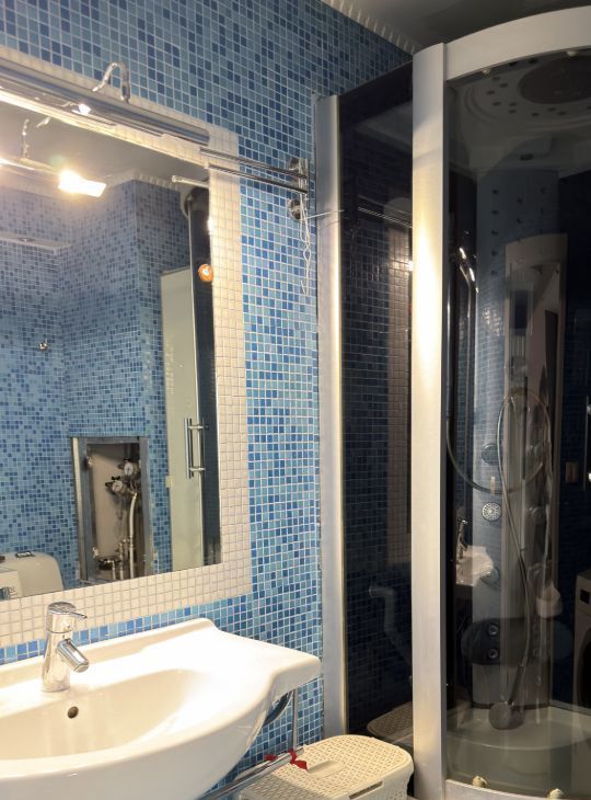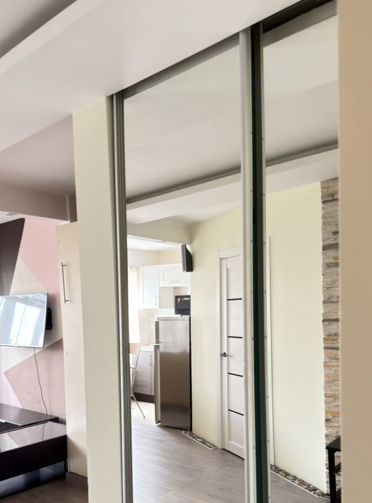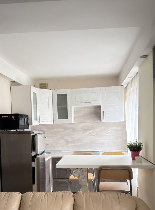 Квартира полностью готова для комфортного проживания. Есть кровать, раскладывающийся диван, стол, стулья на кухне, большой шкаф. Есть вся необходимая техника: холодильник, микроволновка, чайник, посудомоечная машина, телевизор и стиральная машина. В ванной комнате установлена душевая кабина. Окна выходят во двор, что обеспечивает тишину и спокойствие. Есть балкон. Квартира отлично подойдет для одного человека или пары.