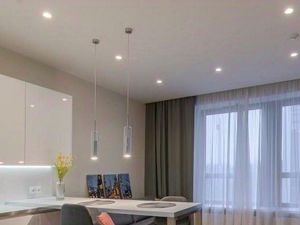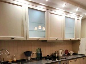 Кухня - 8 кв.м. укомплектована: кухонный гарнитур , варочная плита, духовой шкаф, встроенный холодильник, посудомоечная машина, стол кухонный, 2 стула.
