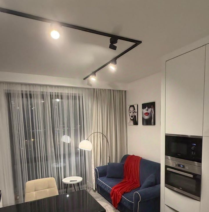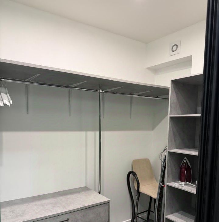• Планировка: гостиная объединена с кухней, спальня, просторная гардеробная комната.
