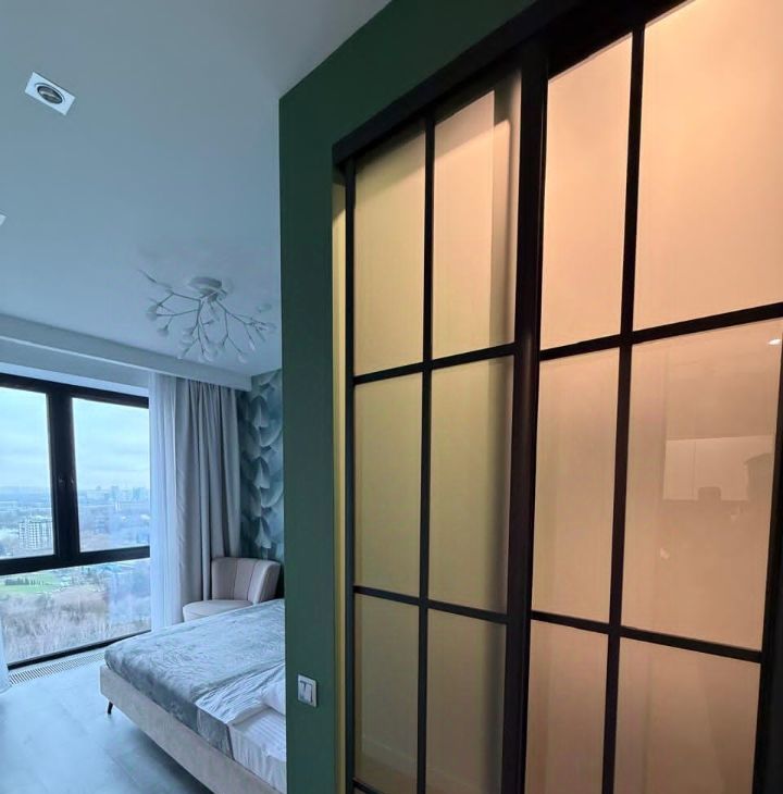 • Окна: два окна в пол с видом на зелёный лесопарк.