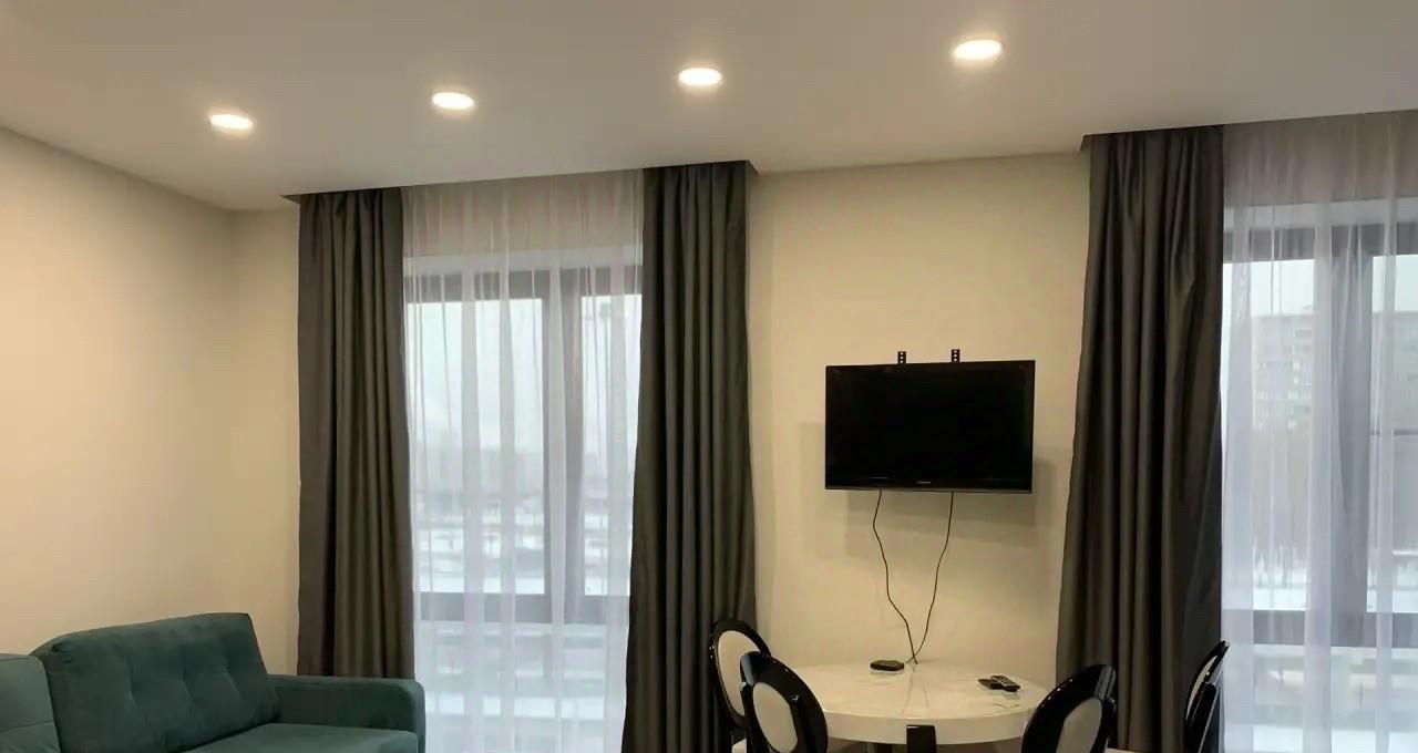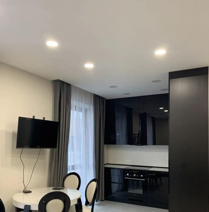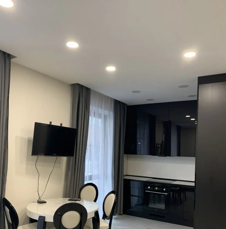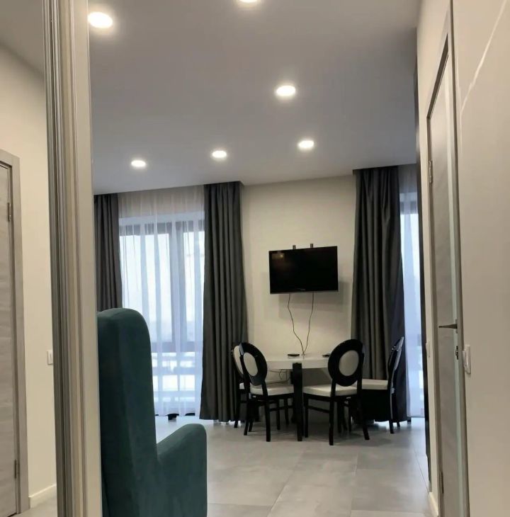 Сдается стильная однокомнатная квартира с дизайнерским ремонтом, расположенная в новом монолитном доме 2021 года постройки. Общая площадь квартиры составляет 47 кв. м, из которых 20 кв. м — жилая зона и 15 кв. м — просторная кухня. Квартира находится на 9 этаже 32-этажного дома, что обеспечивает великолепные виды и тишину. Высота потолков — 2.95 метра, поэтому квартира выглядит еще более светлой и просторной.