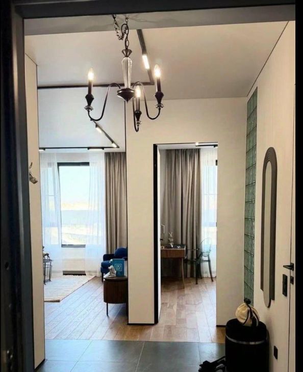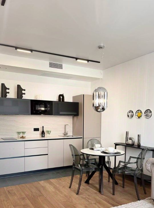 Квартира полностью меблирована. Есть отдельная спальня с удобной двуспальной кроватью, кухня-гостиная с обеденным столом и стильным кухонным гарнитуром, зоной отдыха и деловой зоной, гардеробная и постирочная .В вашем распоряжении будет электрическая плита, холодильник, посудомоечная машина, стиральная машина с сушкой, телевизор.