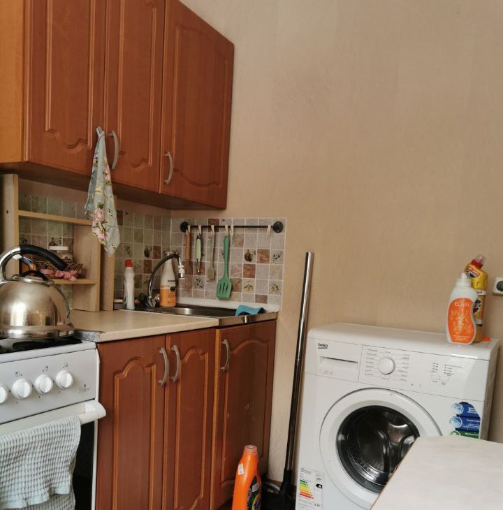 В квартире есть все необходимое для комфортного проживания: косметический ремонт, удобная планировка с комнатой и кухней площадью 6,7 кв. м. В комнате и на кухне установлена мебель, а также имеется вся необходимая техника: холодильник, телевизор и стиральная машина. Санузел совмещенный, с ванной, окна выходят во двор, что обеспечивает тишину и спокойствие.