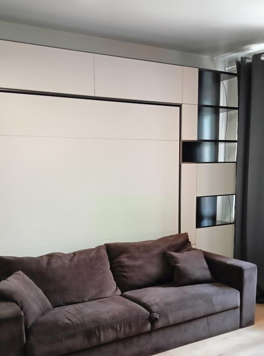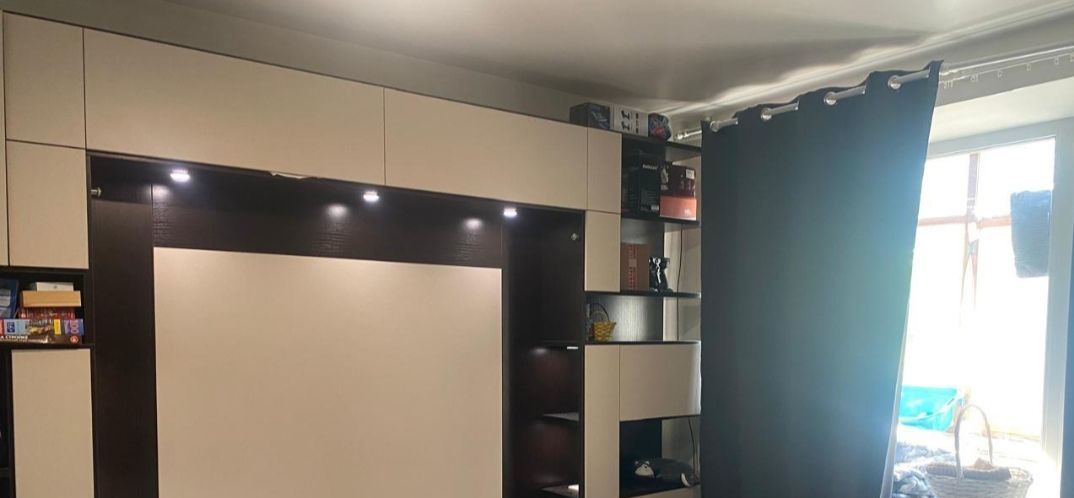 2 х спальная кровать встраивается в стену и собирается, как диван.