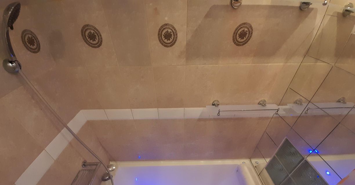 Мраморная ванна с подсветкой.