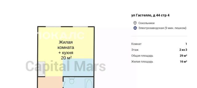 1-к кв. Москва ул. Гастелло, 44С4 (29.0 м²)