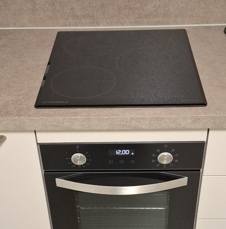 Кухня-встроенный гарнитур,холодильник, варочная панель +духовой шкаф, свч,диван,выход на лоджию.