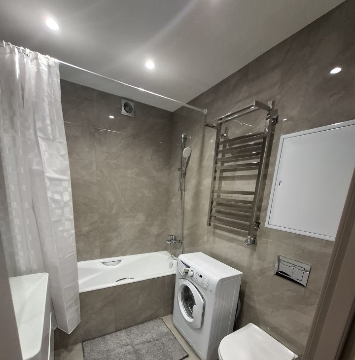 С/у совмещенный,стиральная машина, бойлер,электрический полотенцесушитель.