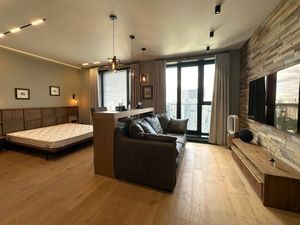 Внутри — продуманный комфорт и эстетика. Светлая гостиная с выходом на балкон, где город растворяется в зелени крон. Премиальная мебель из массива тика — массивная, благородная, с тёплой фактурой. Пол полностью паркет. Техника вся новая: холодильник, варочная панель, духовой шкаф, микроволновка, стиральная машина, кондиционер, пылесос, стерео система, кофемашина и воздухоувлажнитель. На кухне — полный комплект посуды, можно въезжать с чемоданом. Каждая деталь — от текстур до света — работает на ощущение свежести и уюта.
