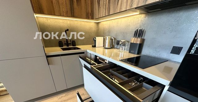 1087501 код объекта. Сдаётся стильная 1-комнатная квартира 44,5 м² на 22-м этаже в бизнесклассе ЖК Crystal, в зелёном и спокойном Хорошёв-Мнёвниках. Абсолютно новый ремонт — вы будете первым жильцом.