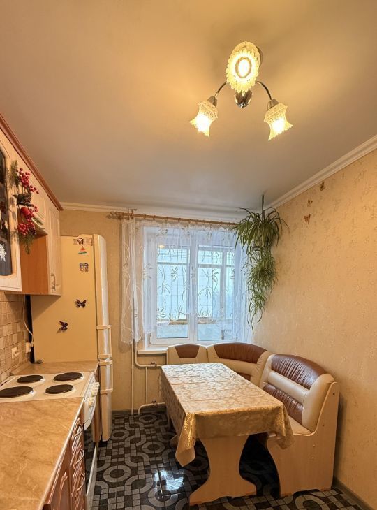 В квартире сделан качественный евроремонт, что создает атмосферу уюта и комфорта. Обстановка включает мебель как на кухне, так и в комнате. Окна выходят во двор, поэтому в квартире тихо и спокойно. Есть лоджия, где можно приятно проводить время.