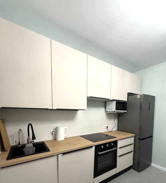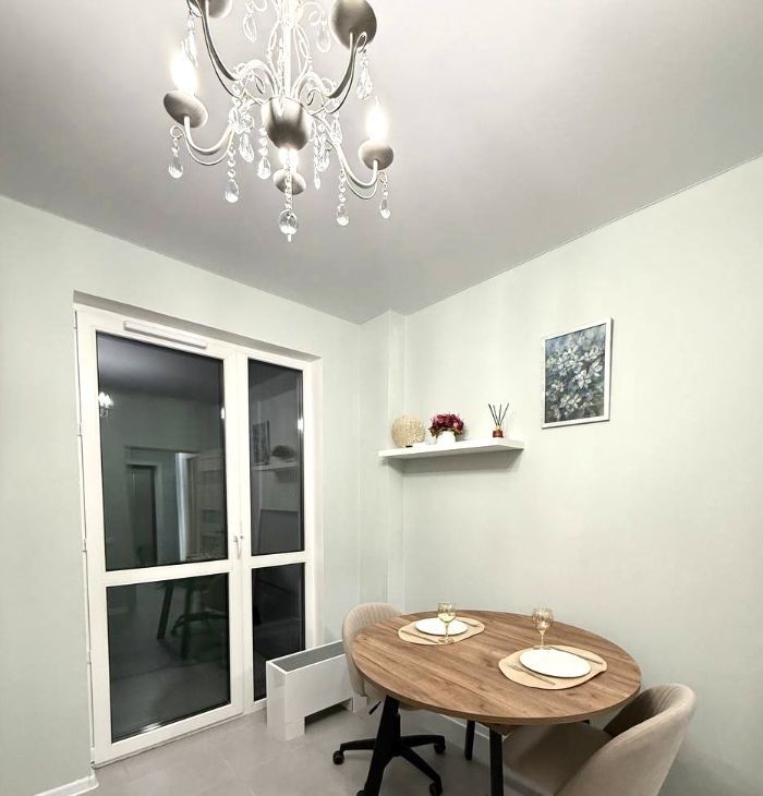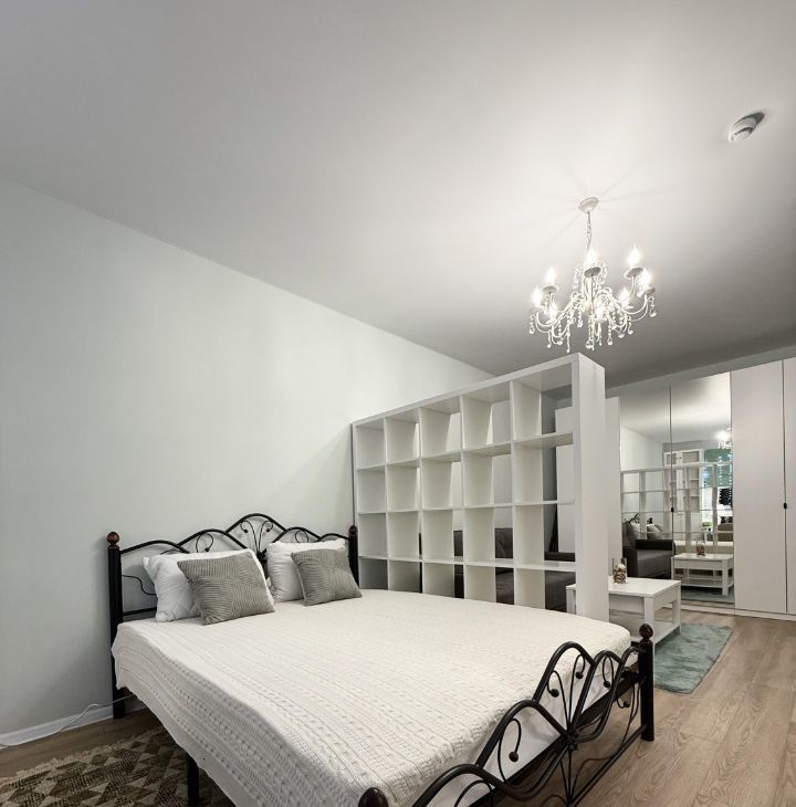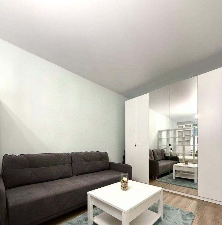 В квартире выполнен качественный евроремонт. Просторная комната разделённая на две зоны, полноценная кухня, совмещённый санузел и лоджия. Шумоизоляция на высшем уровне.
