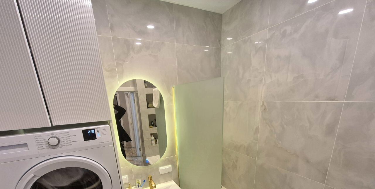 Стильная квартира в одном из самых зеленых жилых комплексов Москвы. Продуманная планировка, высокие потолки 3,2 метра, панорамное остекление — компактное пространство, где есть всё для комфортной жизни одного человека или пары.