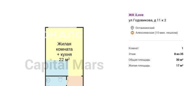 1-к кв. Москва ул. Годовикова, 11к2 (30.0 м²)