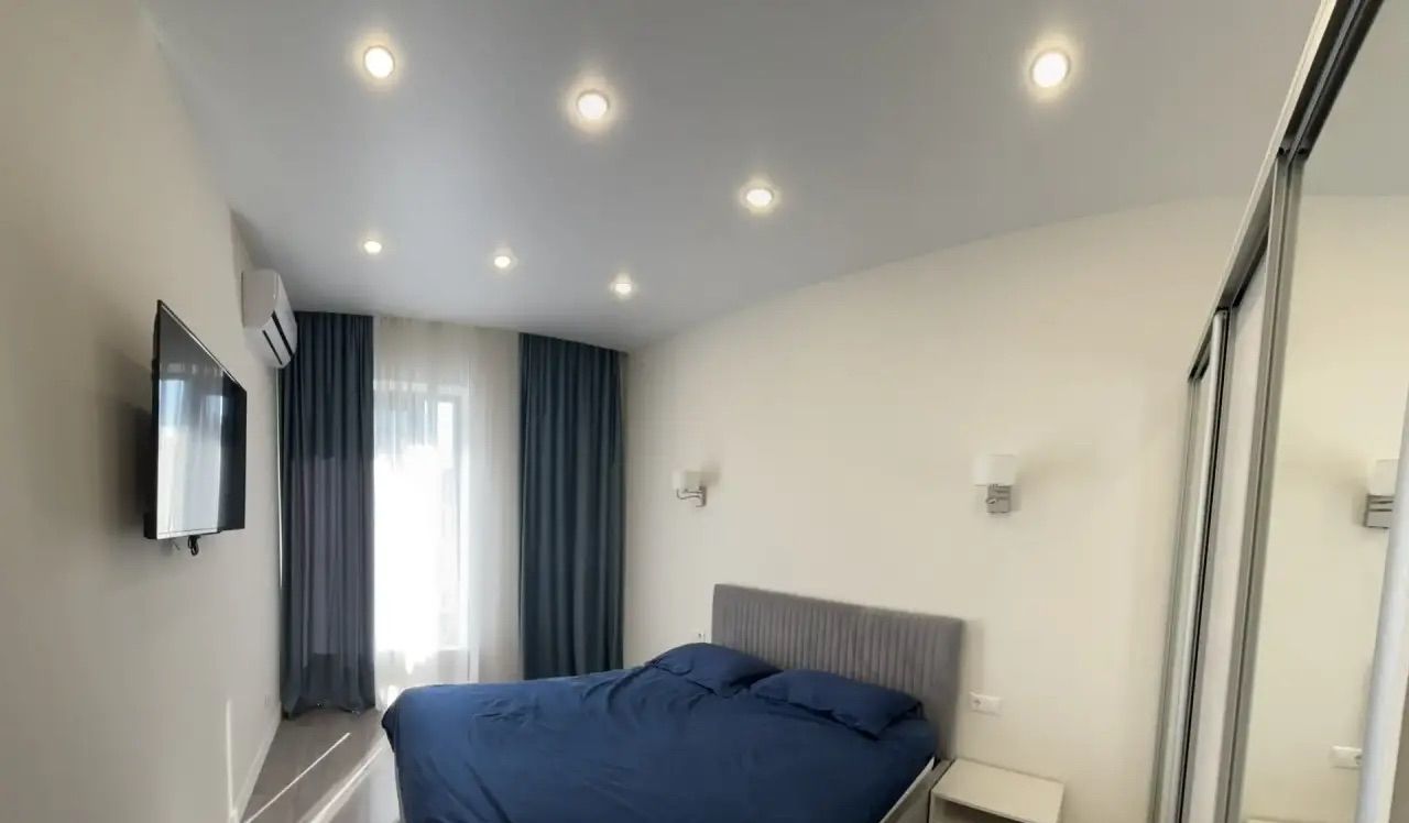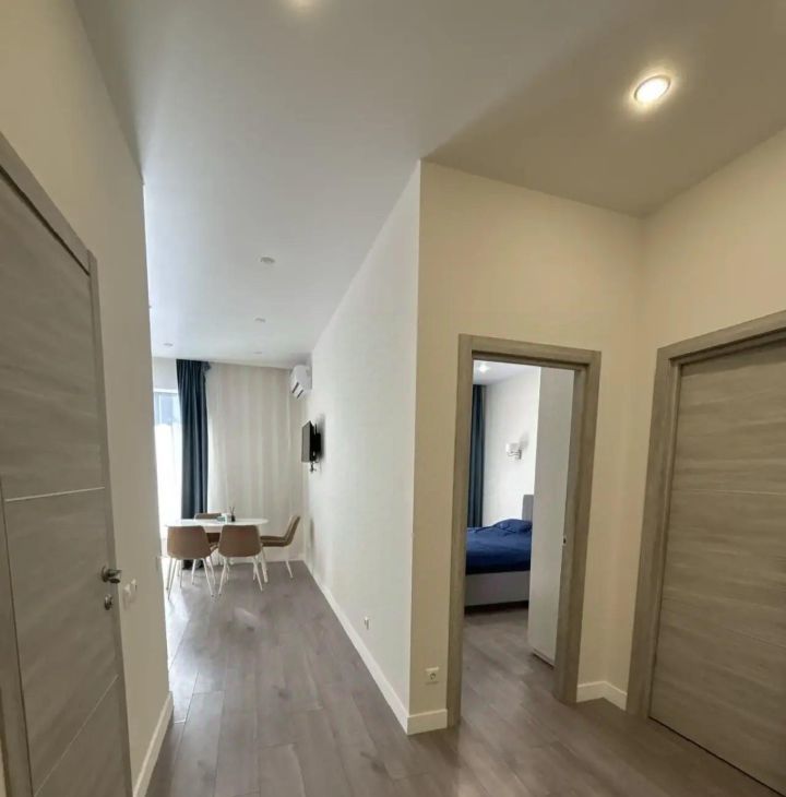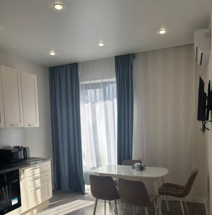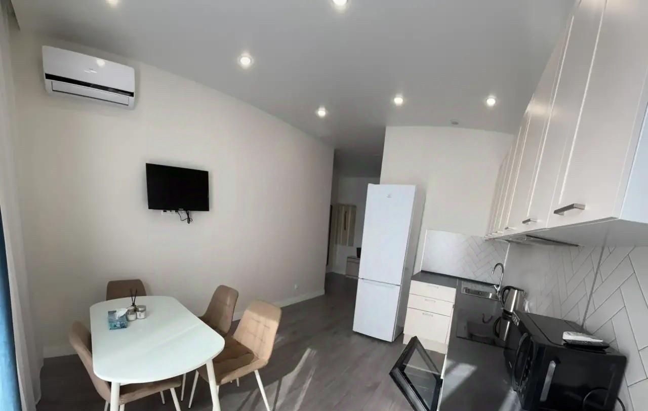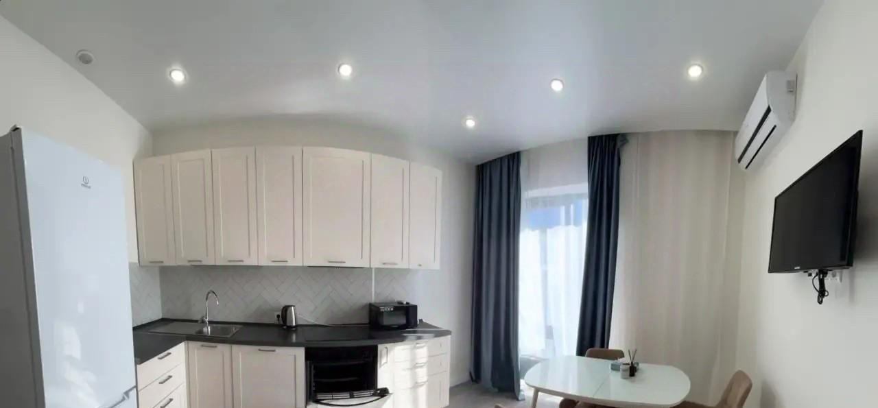 В квартире выполнен современный ремонт, есть вся необходимая мебель как на кухне, так и в комнате: кондиционер на кухне и в комнате , холодильник, посудомоечная машина , телевизор и стиральную машину — все, чтобы ваше проживание было максимально комфортным. Окна квартиры выходят во двор, поэтому в ней всегда тихо и уютно.