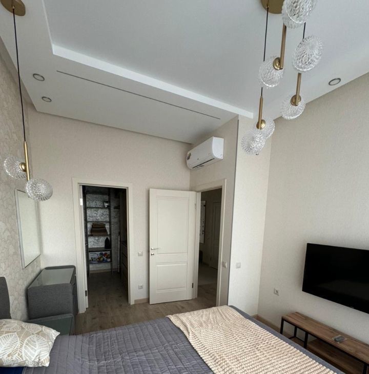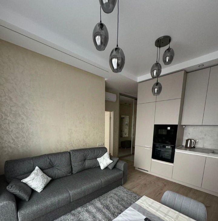 В квартире сделан качественный ремонт, в т.ч. сделана шумоизоляция, аквастоп. Имеется все необходимое: вся мебель, кондиционеры, посудомоечная, стирально-сушильная машины, духовка, микроволновка, индукционная плита, полноценный холодильник, постельные принадлежности, текстиль, посуда, чайник, утюг, фен, телевизоры.