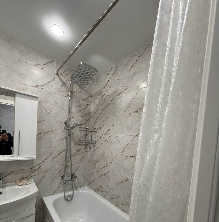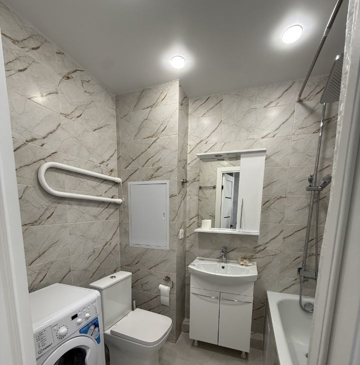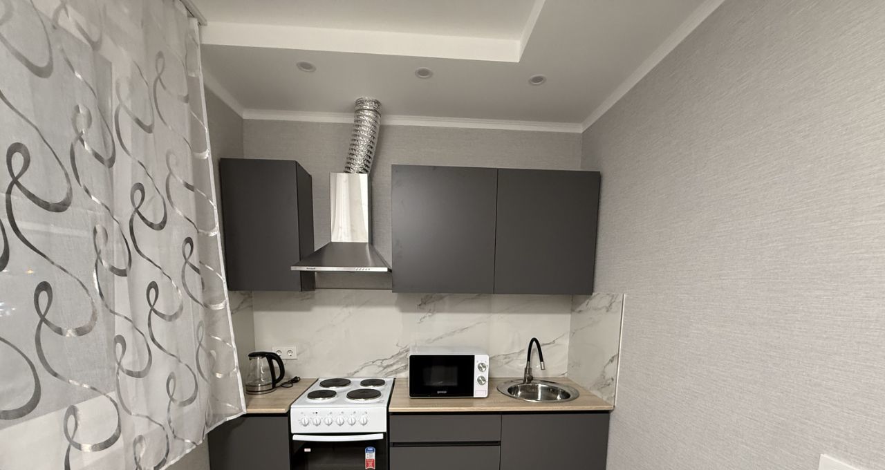 В квартире сделан качественный евроремонт, есть вся необходимая мебель как на кухне, так и в комнате. Удобная планировка позволяет комфортно разместиться как одному человеку, так и паре. Ванная комната оснащена ванной, поэтому можно расслабиться после долгого дня. Из техники в квартире есть холодильник, телевизор и стиральная машина, что делает проживание максимально удобным.