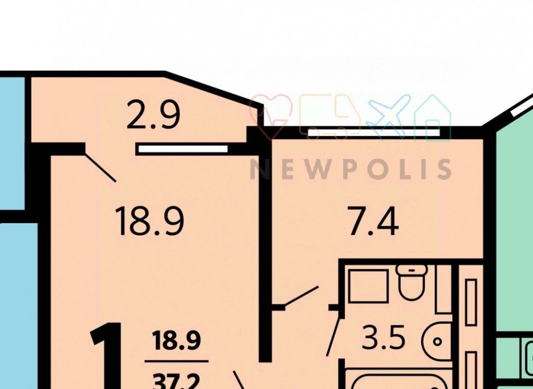 Однокомнатная квартира 36,6 м² с мебелью и техникой для долгосрочной аренды.