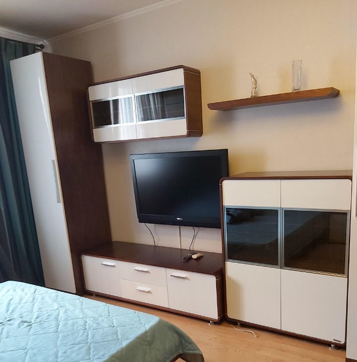Квартира чистая, свежий ремонт, оборудована хорошей современной мебелью. В комнате двуспальная кровать(160см) с ортопедическим матрасом. Есть стиральная машина, холодильник, СВЧ, кондиционер, телевизор, пылесос, гладильная доска, утюг. Сантехника современная и в отличном состоянии.