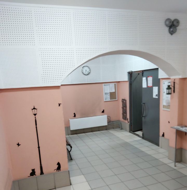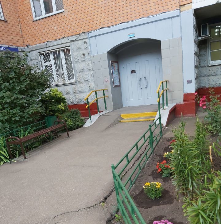 Подъезд чистый, декорированный живыми цветами, консьерж. Холл после ремонта, на две квартиры, не захламленный. Соседи спокойные, не курящие. Окна во двор, двор большой, зеленый, сразу за домом большая парковка, территория закрыта шлагбаумом, с парковкой проблем нет.