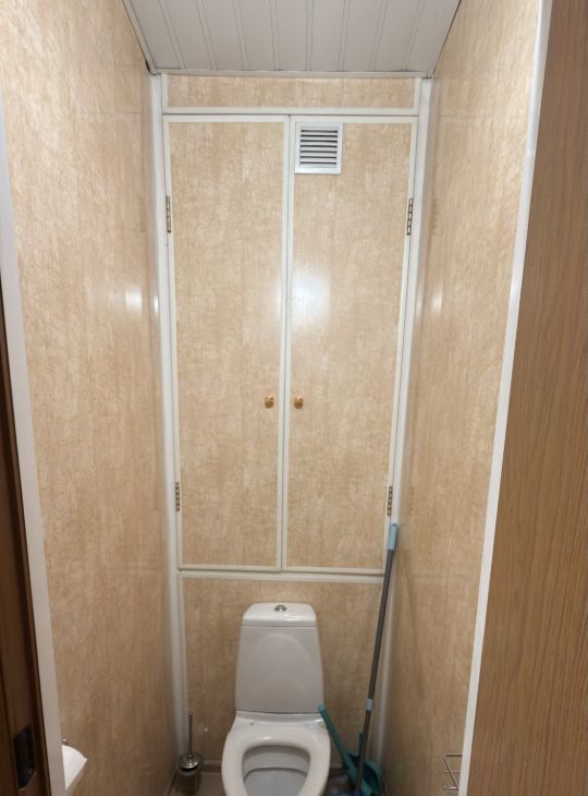 Изолированная комната с кроватью с подъемным механизмом и вместительным шкафом для одежды.