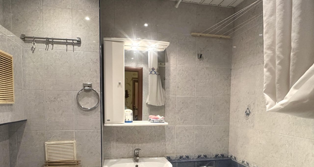 Из техники есть все необходимое: холодильник, телевизор и стиральная машина. Окна выходят во двор.