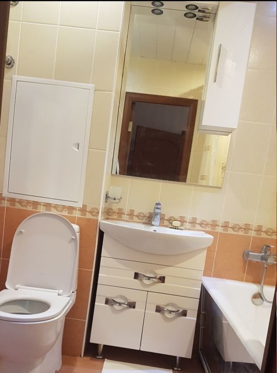 Просторная, чистая, уютная. Балкон застеклён, стеклопакеты. Кухонный гарнитур под единой столешницей, холодильник 2-х камерный, СВЧ, диван раскладной, шкаф-купе, санузел совмещен плитка до потолка, стиральная машина автомат. Сдаётся на долгий срок.