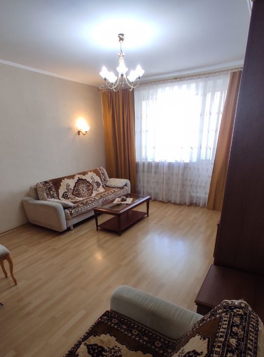 В квартире есть всё необходимое для комфортного проживания. Выполнен косметический ремонт, обстановка приятная и современная. В комнате установлена мебель, а на кухне — вся необходимая техника: холодильник, телевизор и стиральная машина. Санузел раздельный, в ванной комнате есть ванна. Окна выходят во двор, поэтому в квартире тихо и спокойно. Также имеется лоджия, где можно организовать уютное место для отдыха.