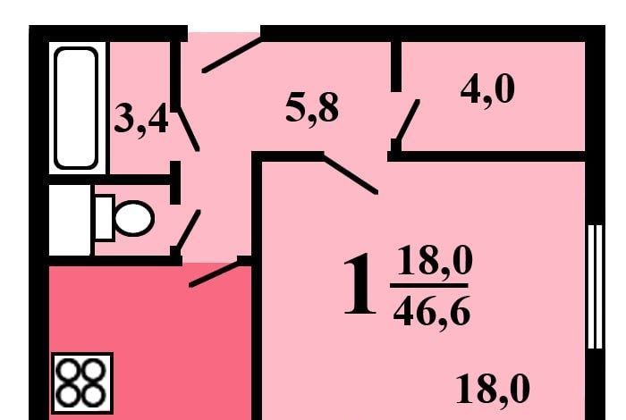 1-к кв. Москва ул. Гурьянова, 4К1 (44.5 м²)