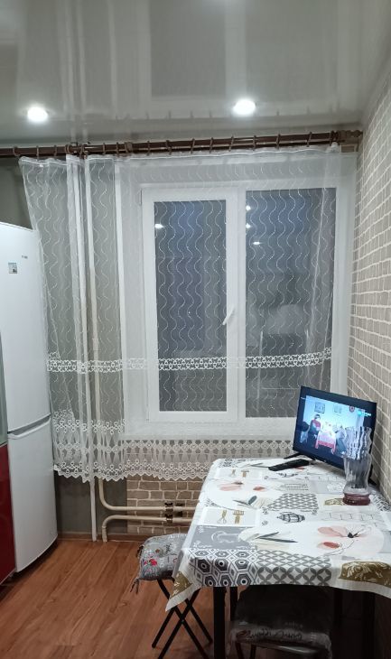 В квартире выполнен современный , есть вся необходимая мебель и техника для комфортного проживания. На кухне и в комнате установлена мебель, а также имеется холодильник, телевизор и стиральная машина. Санузел совмещенный, оборудован ванной. Также в квартире есть большая застеклённая лоджия, где можно отдохнуть на свежем воздухе.