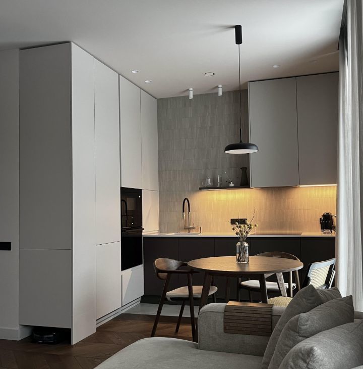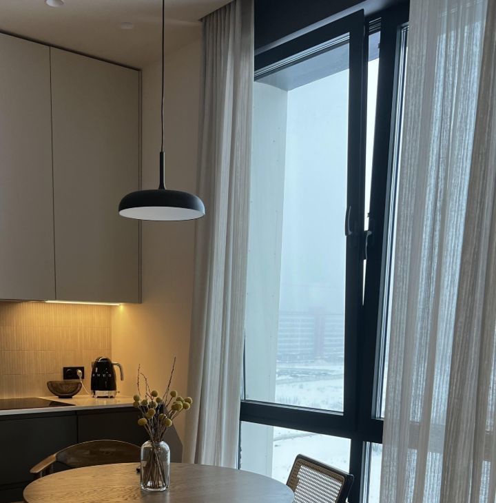 Сдаётся 1-комнатная светлая квартира площадью 38 кв.м. с дизайнерским ремонтом, высокими потолками и панорамными окнами. Напольное покрытие из натурального дуба, во всех зонах с плиткой подогрев. Функциональная планировка, много продуманных мест для хранения. Охраняемая территория ЖК, двор без машин и подземная парковка. Дом тёплый монолитный с хорошей шумоизоляцией.
