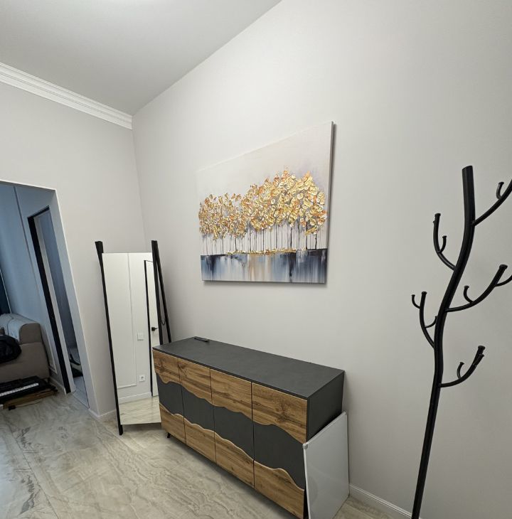 Сдаётся уютная однокомнатная квартира в современном жилом комплексе. Общая площадь — 41 кв. м, жилая — 18 кв. м, кухня — 13 кв. м. Квартира располагается на 7 этаже 10-этажного дома, построенного в 2022 году. Высокие потолки в 3 метра добавляют простора. Окна выходят во двор, обеспечивая тишину и спокойствие.