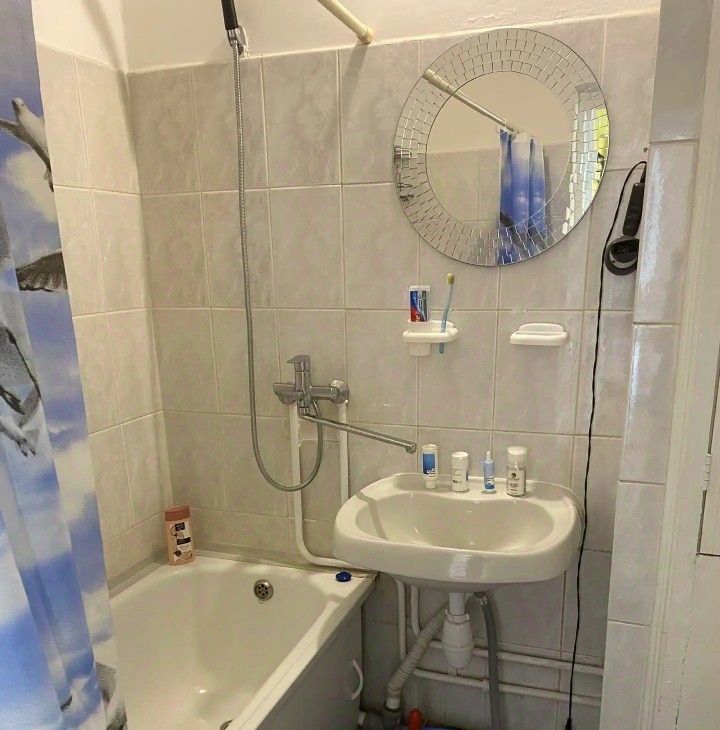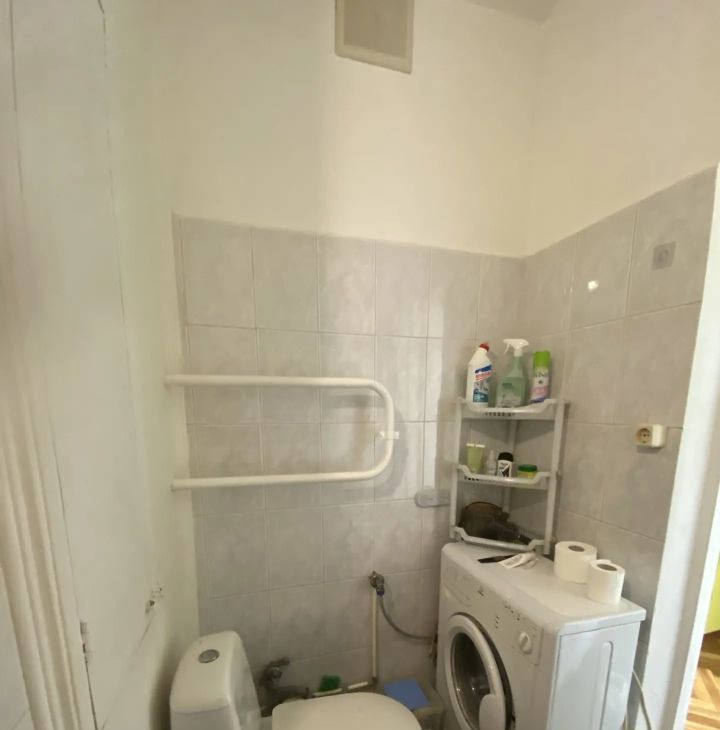 Стиральная машина установлена в санузле , санузел совмещён . Сантехника , как и электрика в рабочем состоянии .