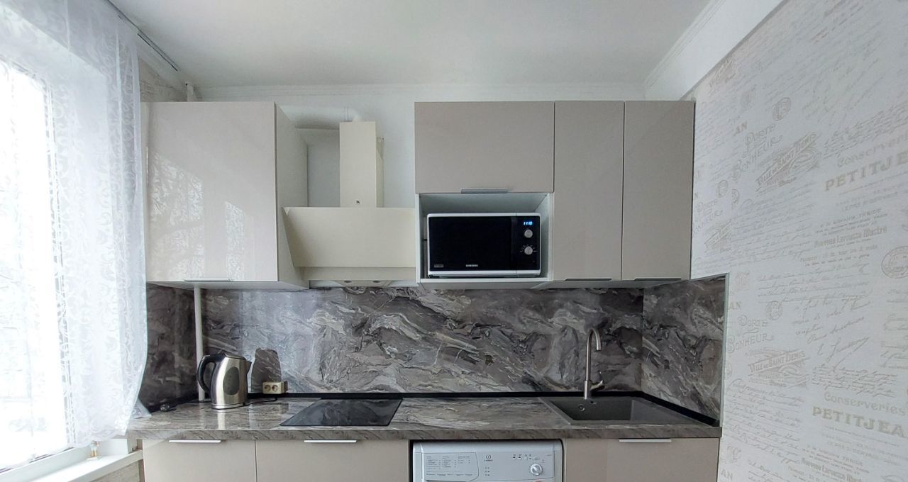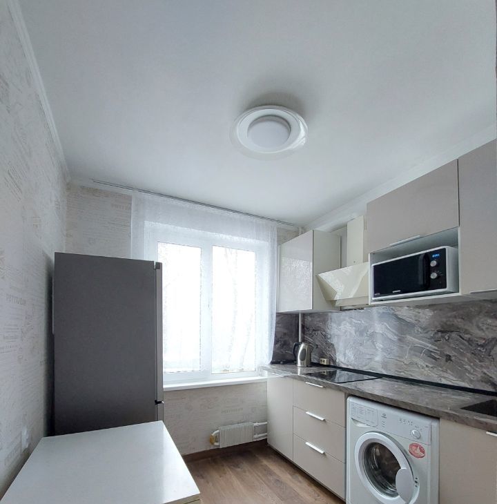 * В кухне 7 м2 - НОВЫЙ кухонный гарнитур, 2-х камерный холодильник, СВЧ, встраиваемая варочная панель - стеклокерамика, вытяжка, стиральная машина- автомат, эл. чайник, обеденная группа.