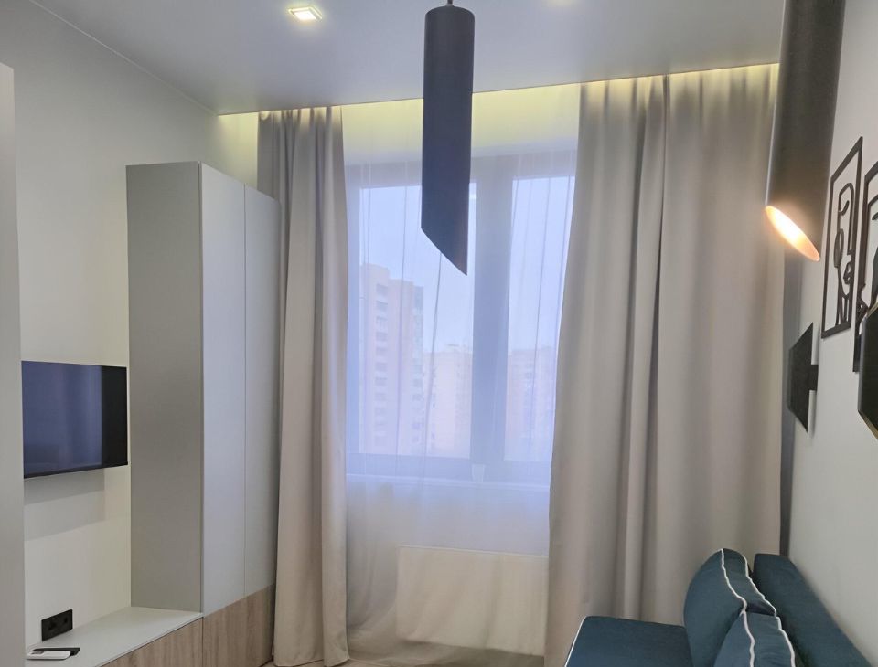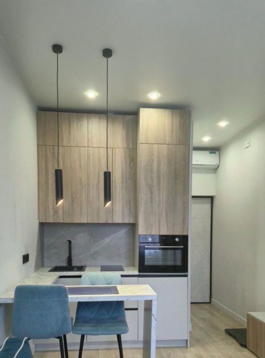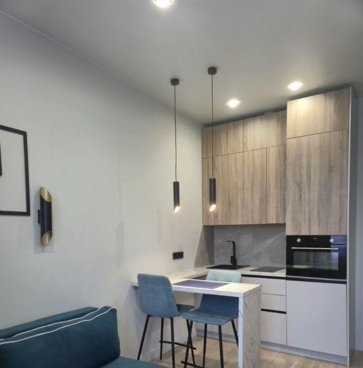 Сдаётся стильная однокомнатная квартира в апартаментах на улице Ивана Франко, 6. Находится на 6 этаже девятиэтажного монолитного дома, построенного в 2022 году. Общая площадь квартиры составляет 27 кв. м, из которых 17 кв. м — жилая площадь и 4 кв. м — уютная кухня. Высокие потолки 3.2 метра создают ощущение простора и свободы.