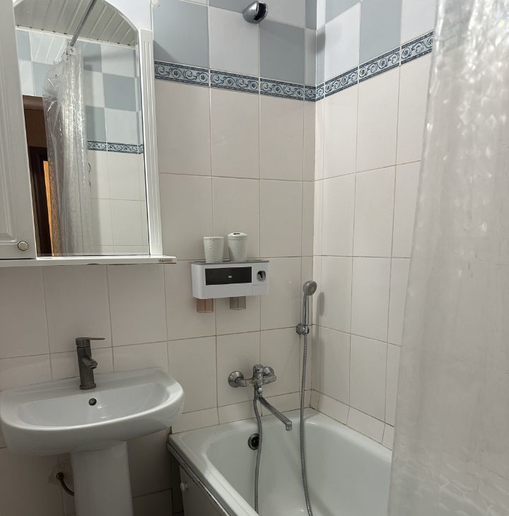 Сдается однокомнатная квартира. Есть вся необходимая мебель и техника. Холодильник, стеклокерамическая варочная панель, духовой шкаф, микроволновая печь, стиральная машина, телевизор и кондиционер. С животными нельзя.